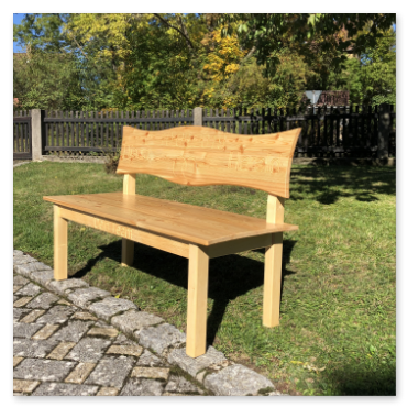 Durch die Holzstruktur wirkt die Bank lebendig. Die Holzart Fichte ist ebenso weich und elastisch. Durch das geringe Gewicht des Holzes ist die Bank sehr leicht und kann einfacher getragen werden. Das Untergestell ist in Stollenbauweise konstruiert, dadurch wird eine hohe Stabilität gewährleistet.