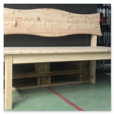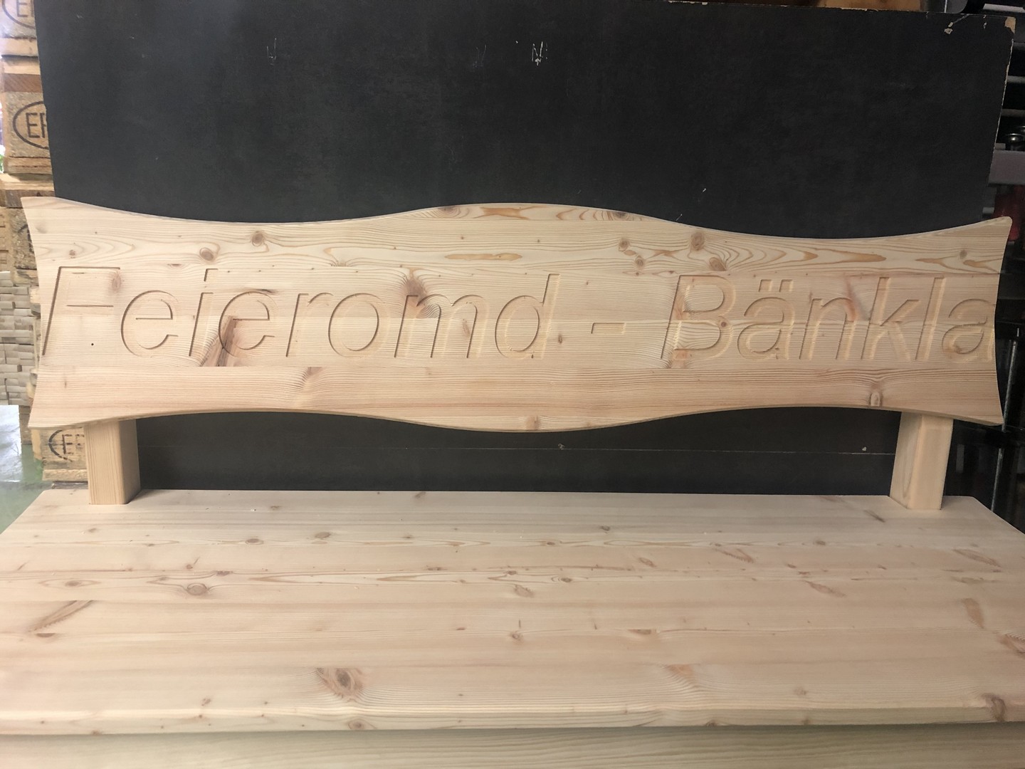 Es können verschiedene Schriftzüge in die Rückenlehne eingefräst werden.