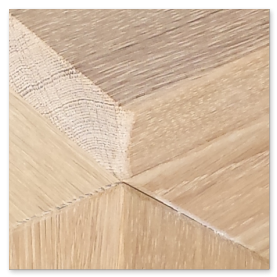 Um das Material so gut wie möglich zu schützen und eine saubere und angenehme Oberfläche zu erhalten, werden alle Möbel wahlweise mit Naturöl, weißen Öl oder Lack behandelt.